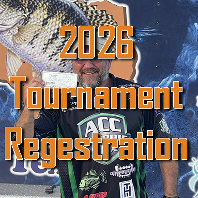 | Divisions | Division 1 & Crappie masters Add on, Division 1, Big Fish & Crappie Masters Add on, TSCC Div 1 With Big Fish -$425, TSCC Div 2 – $165, TSCC Div 2 -$155, TSCC Div 2 with Big Fish – $165, TSCC Div 2 With Big Fish-$175, Amateur $50 (includes $10 Big fish), Div 1 with Big Fish and Side Pot – $325, pro, Pro $170 (includes $20 Big fish), Semi-pro $100 (includes #20 Big fish), Texas Hold Em Amateur Team -$100, Texas Hold Em Pro -$100, DIV 1 – $205, DIV 1 with Big Fish – $225, DIV 1 with Big Fish with Crappiemasters – $275, DIV 1 with Crappiemasters with No Big Fish – $255, DIV 2 – $80, DIV 2 with Big Fish – $90, DIV 2 with Big Fish with Crappiemasters – $140, DIV 2 with Crappiemasters with No Big Fish – $130 |